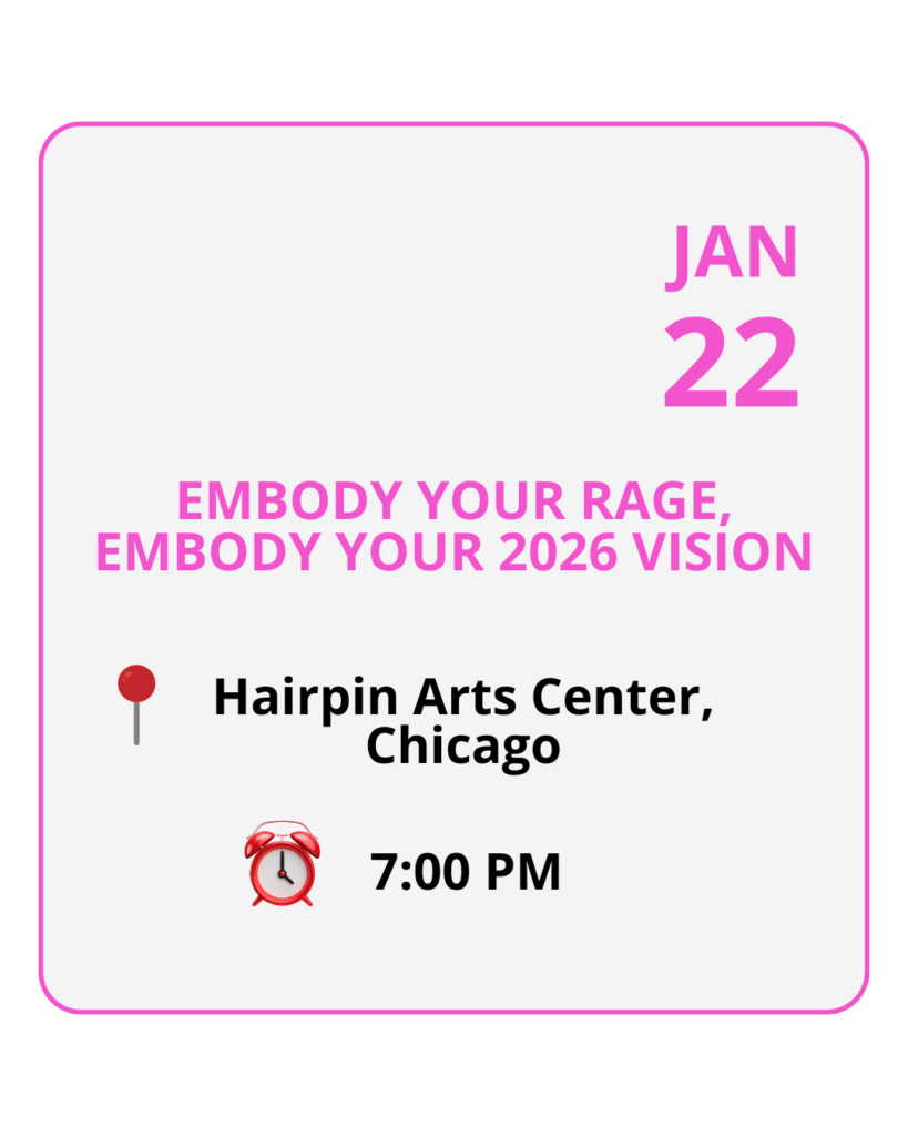 A series of monthly in-person experiences to continue rooting your rage as a source of strength,